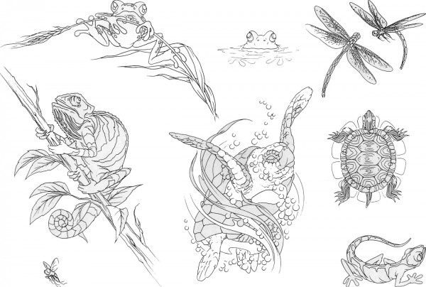 一组18张漂亮的欧美newschool动物纹身手稿图案