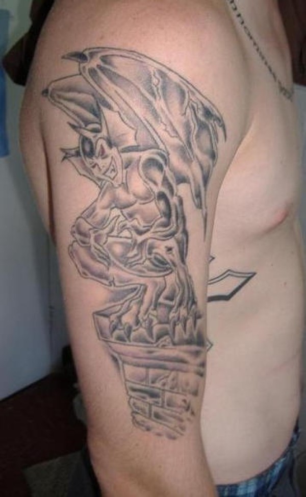 手臂黑色微笑的石像鬼纹身图案