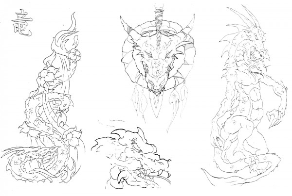 龙纹身手稿_一组老传统黑灰龙手稿纹身图案