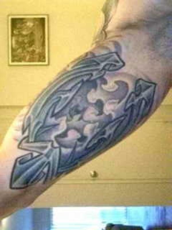 手臂上的超现实部落标志纹身图案