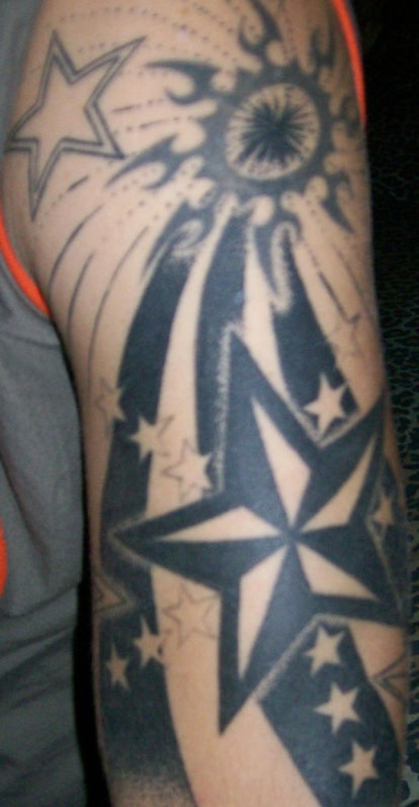 太阳和星星黑白个性手臂纹身图案