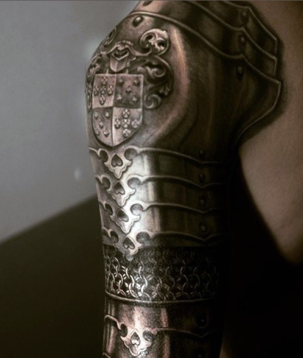 手臂惊人的非常逼真中世纪盔甲纹身图案