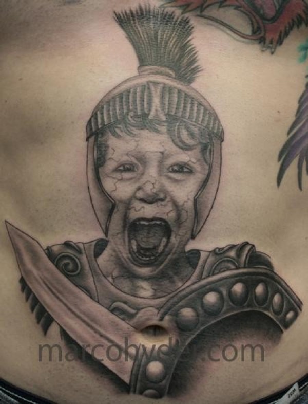 非常逼真的独特黑白罗马男孩战士装甲纹身图案