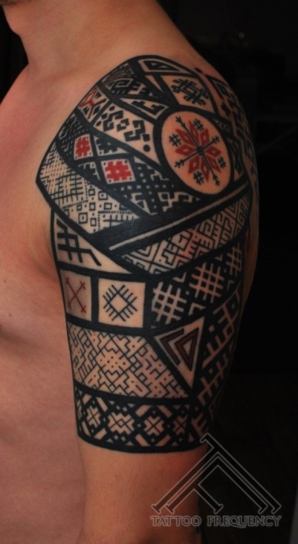 肩部装饰风格的彩色盔甲与饰品纹身图案
