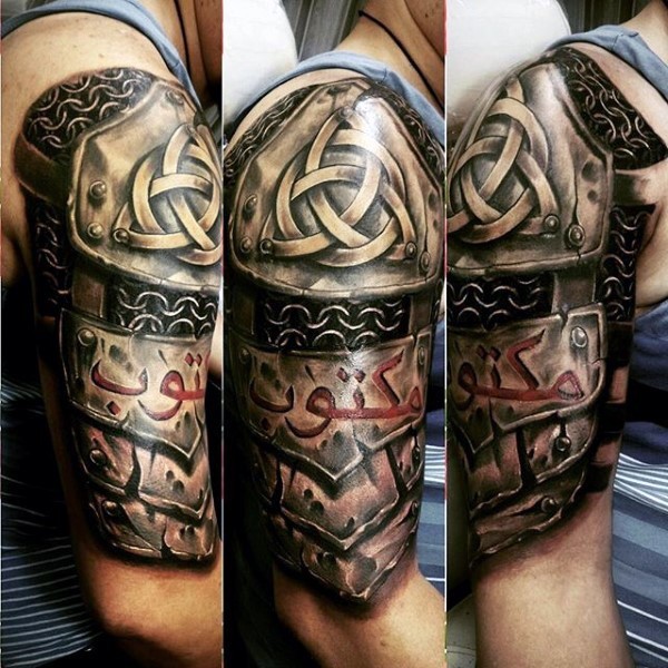 大臂凯尔特风格的彩色盔甲徽章纹身图案