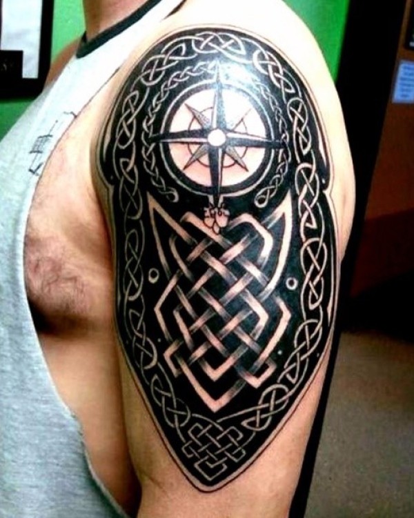 大臂精确设计的黑白凯尔特风格盔甲纹身图案
