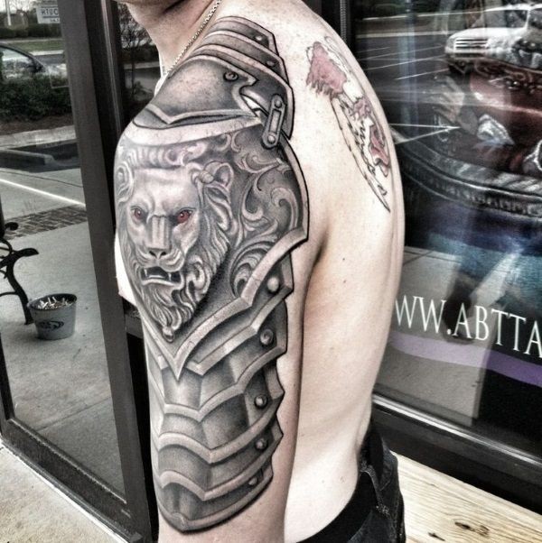 大臂灰色的中世纪肩狮子盔甲纹身图案