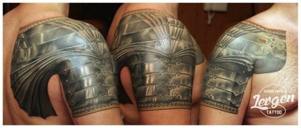 大臂写实风格的彩色中世纪盔甲纹身图案