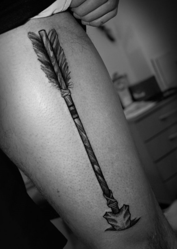 男人大腿印度箭头纹身图案