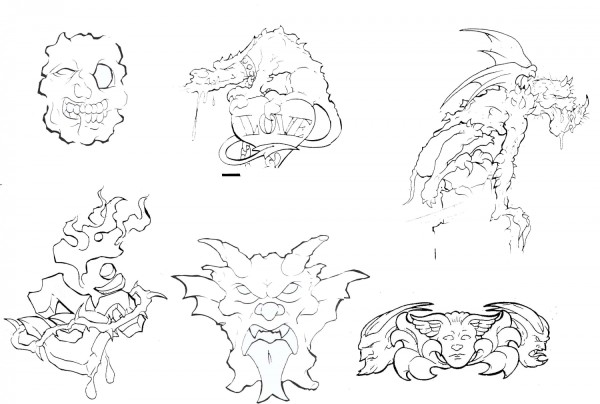 龙纹身手稿_一组老传统黑灰龙手稿纹身图案