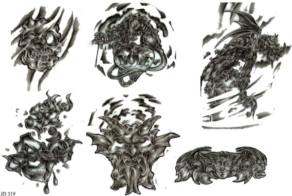 龙纹身手稿_一组老传统黑灰龙手稿纹身图案