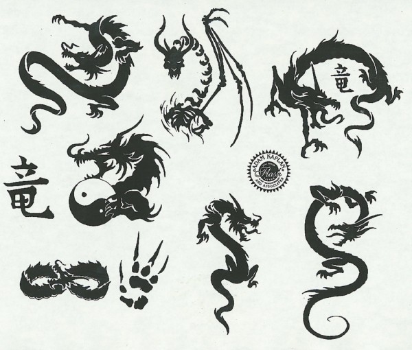 龙纹身手稿_一组老传统黑灰龙手稿纹身图案