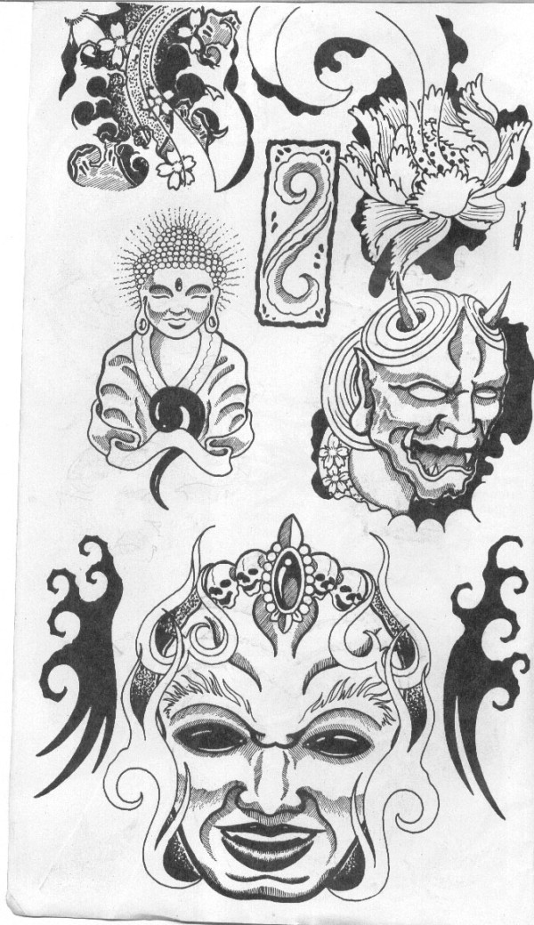 能面万媚纹身手稿_52张日式能剧面具纹身手稿图案素材欣赏