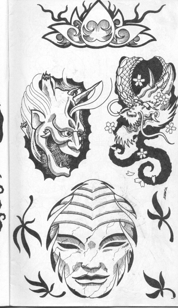 传统艺妓般若纹身图案手稿