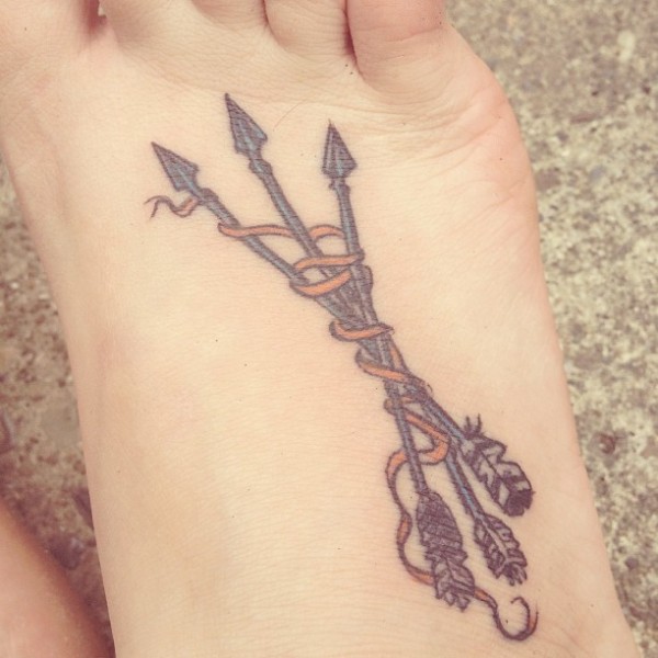 脚背三个部落箭与绳子打结纹身图案