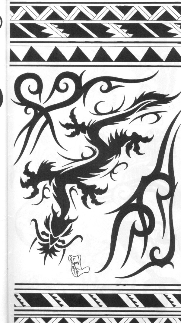龙纹身手稿_一组老传统黑灰龙手稿纹身图案