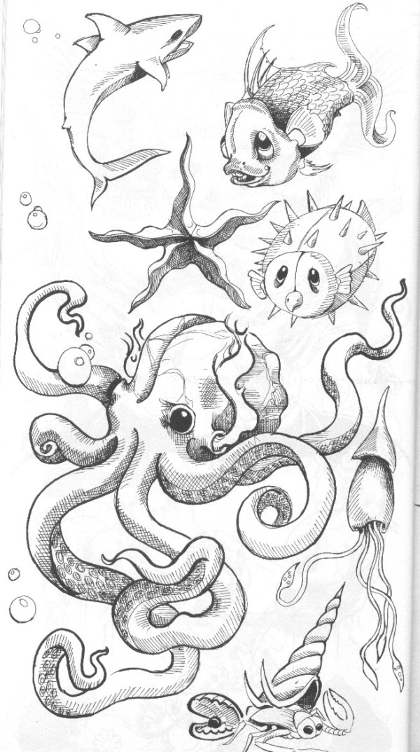 双鱼座纹身手稿_45张十二星座之双鱼手稿纹身图案