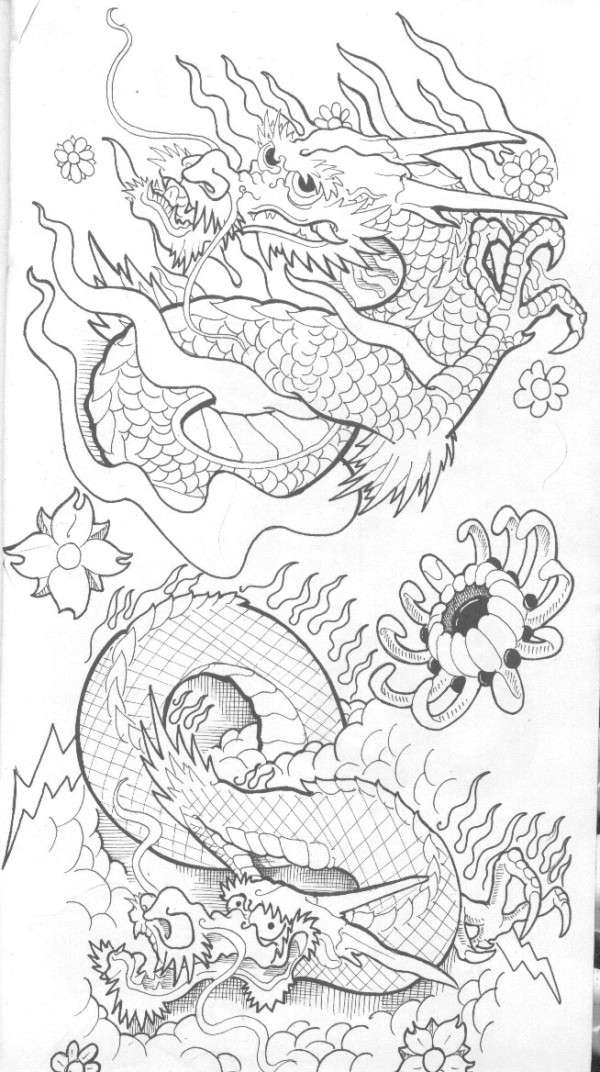 龙纹身手稿_一组老传统黑灰龙手稿纹身图案