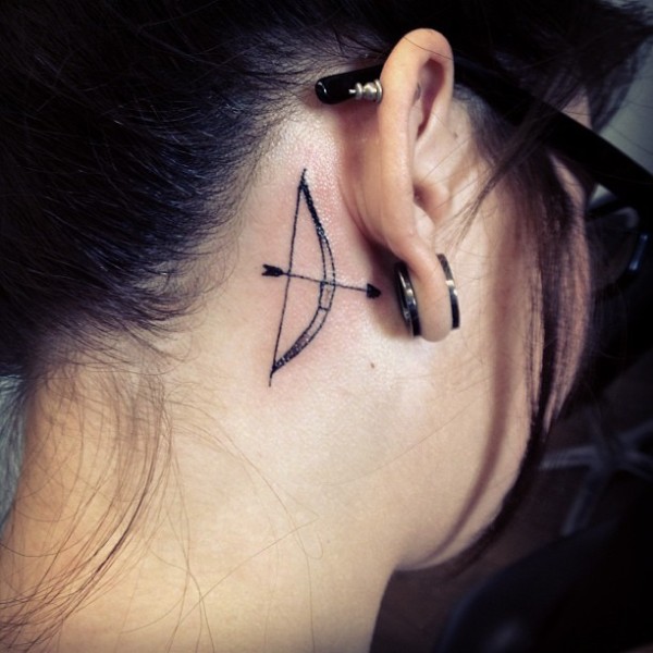 女孩耳后的弓与箭头纹身图案