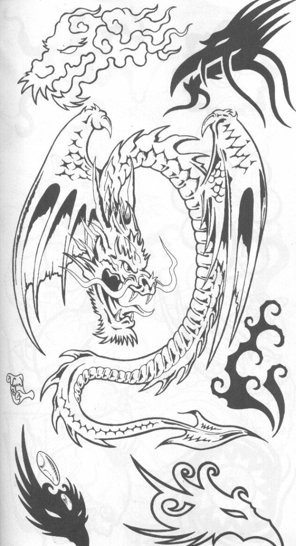 龙纹身手稿_一组老传统黑灰龙手稿纹身图案