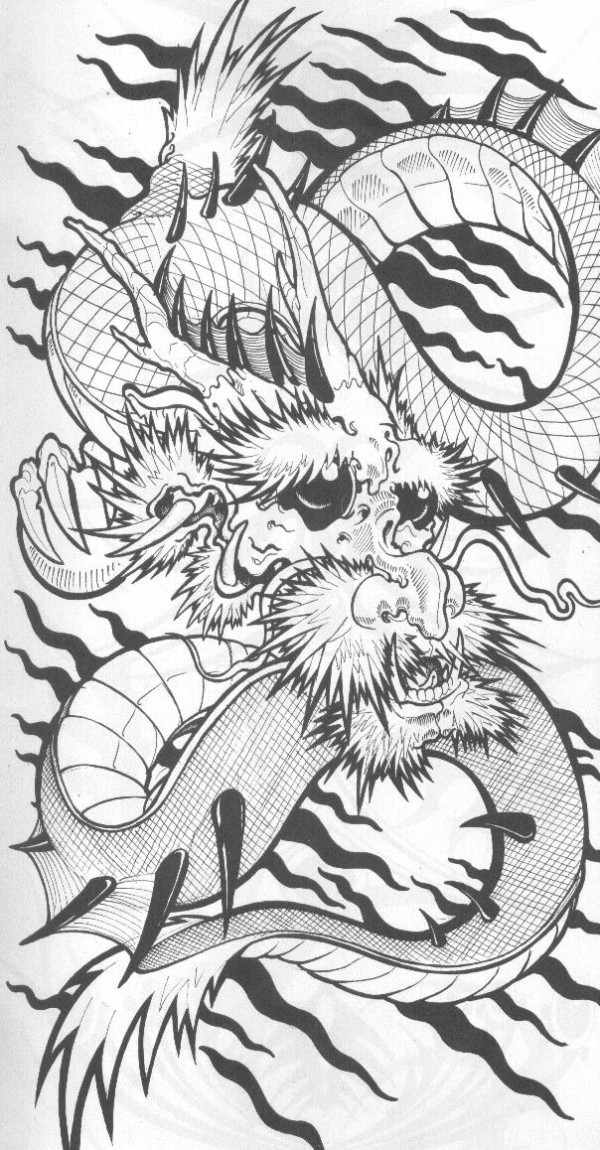 龙纹身手稿_一组老传统黑灰龙手稿纹身图案