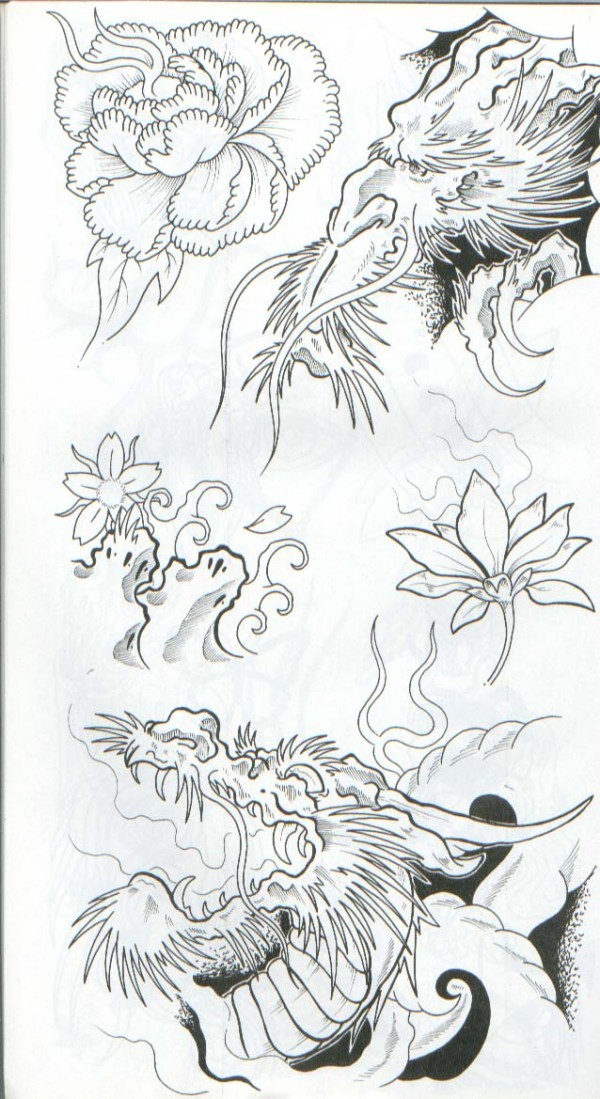 龙纹身手稿_一组老传统黑灰龙手稿纹身图案