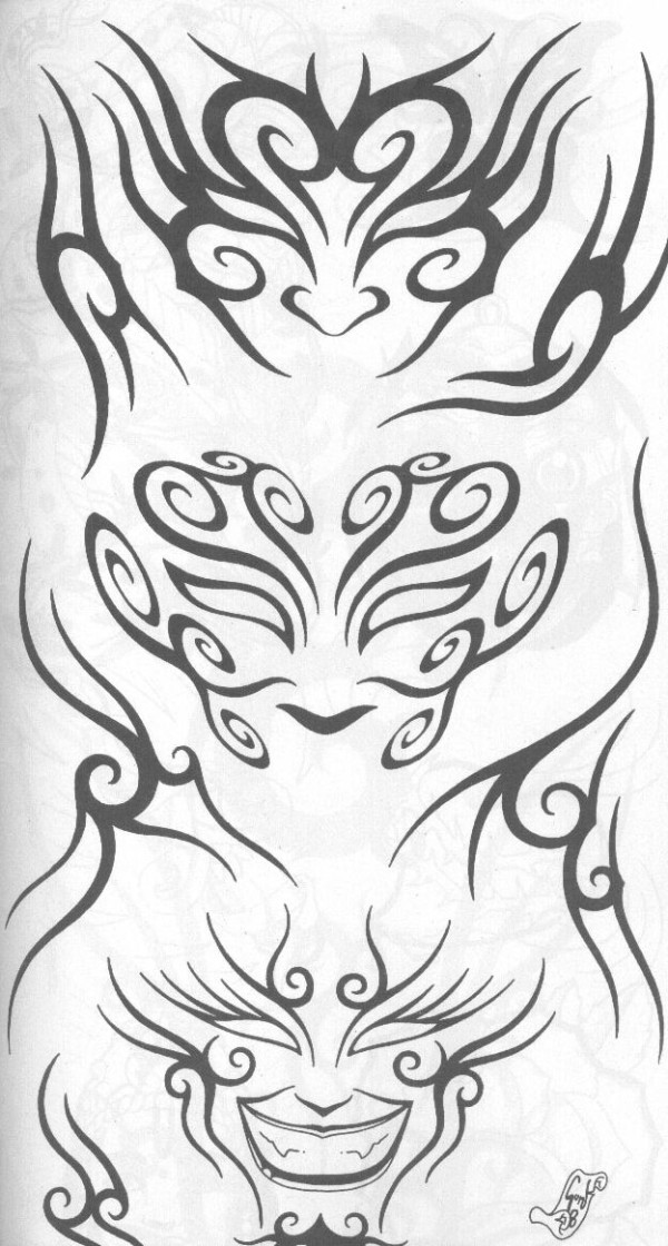 能面万媚纹身手稿_52张日式能剧面具纹身手稿图案素材欣赏