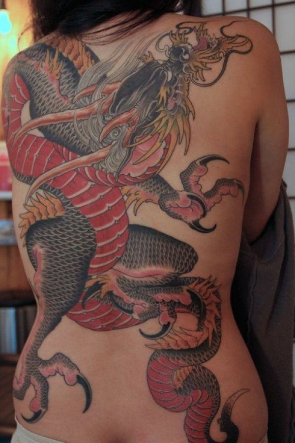 女生满背惊艳的的亚洲幻想龙纹身图案
