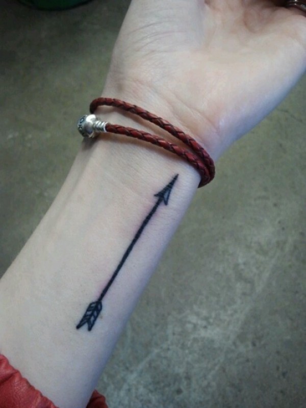 手腕梦幻的黑色箭纹身图案