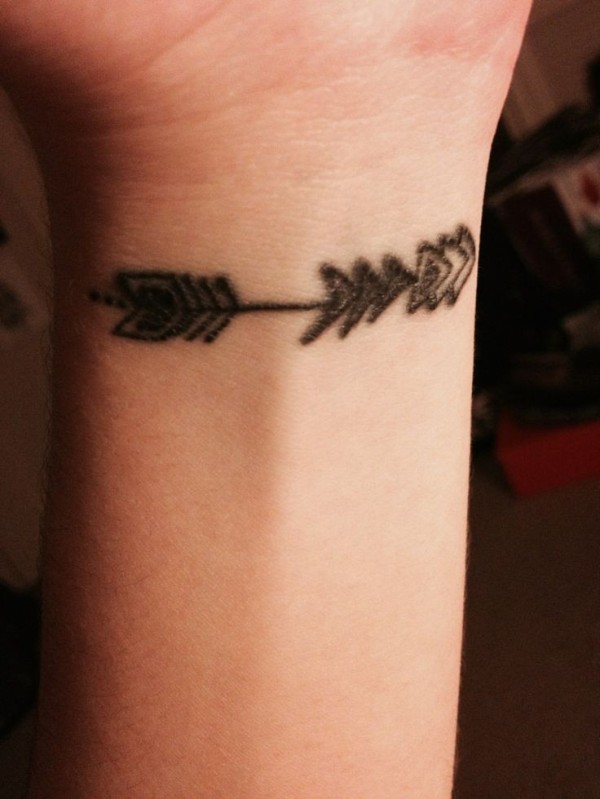 女孩手腕上的小小黑色箭头纹身图案