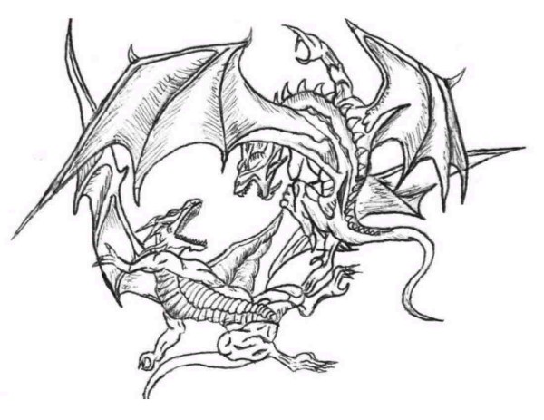 龙纹身手稿_一组老传统黑灰龙手稿纹身图案