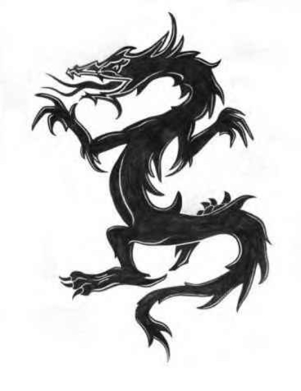 龙纹身手稿_一组老传统黑灰龙手稿纹身图案