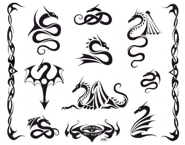 龙纹身手稿_一组老传统黑灰龙手稿纹身图案