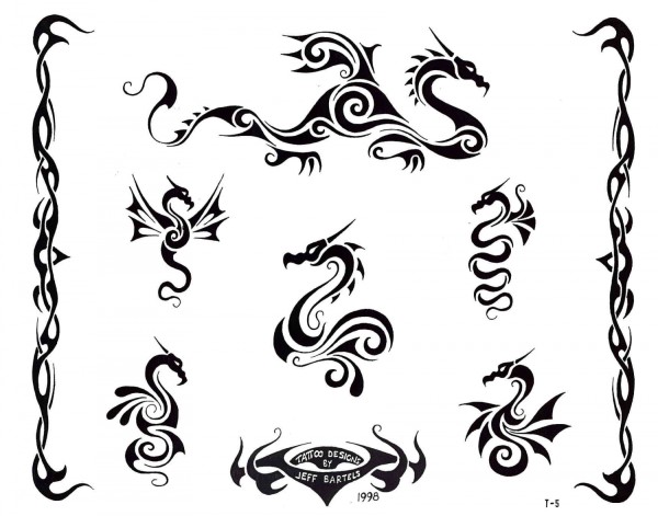 龙纹身手稿_一组老传统黑灰龙手稿纹身图案