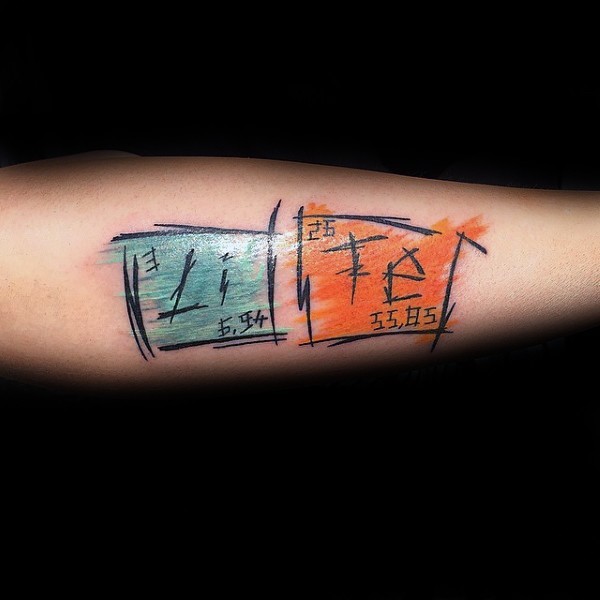 小臂彩色的亚洲化学表纹身图案