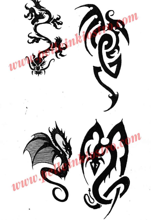 龙纹身手稿_一组老传统黑灰龙手稿纹身图案