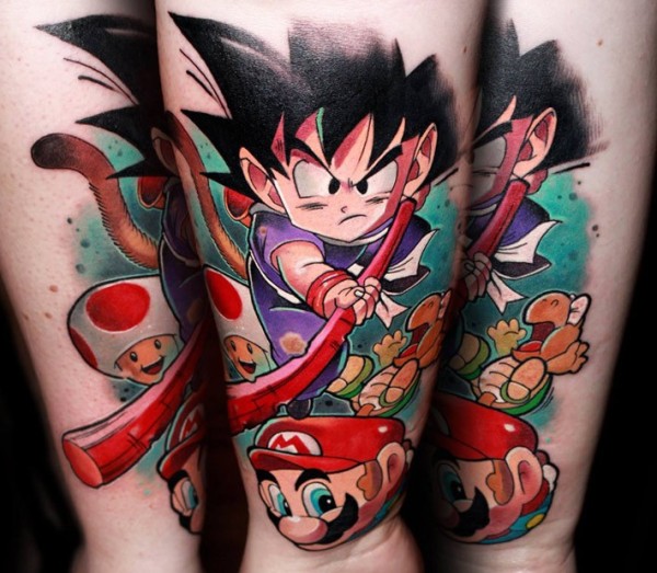 亚洲式彩色动漫卡通人物小臂纹身图案