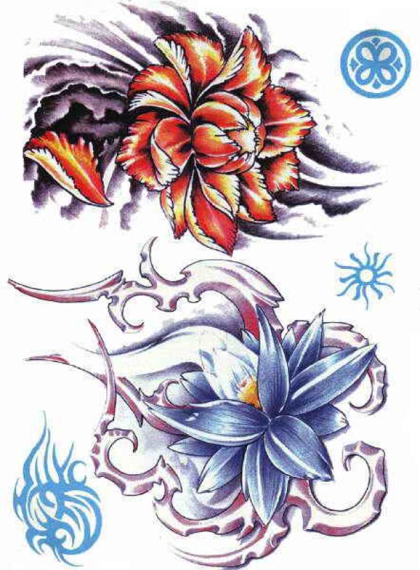 一组15张莲花纹身手稿图案素材