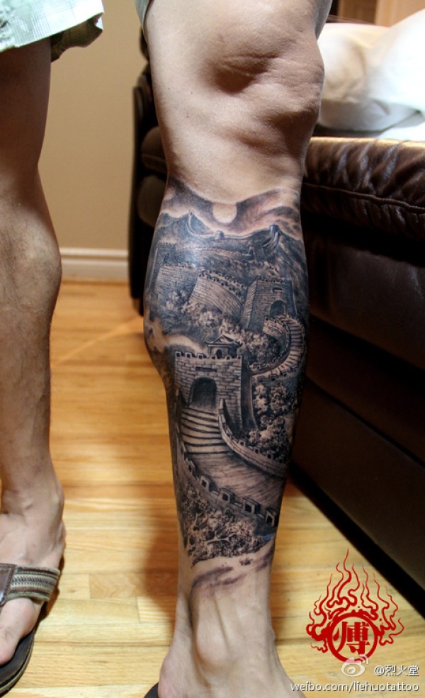 花腿纹身--一组大黑腿纹身图案作品欣赏