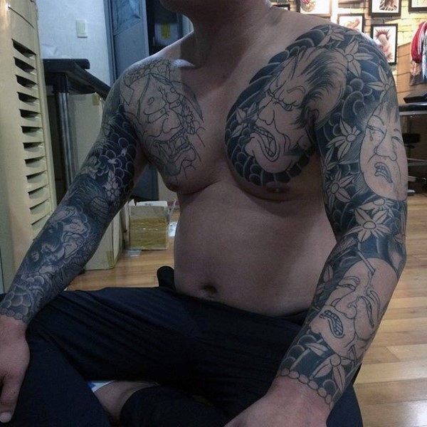 双半甲有趣的亚洲风格黑色各种生首纹身图案