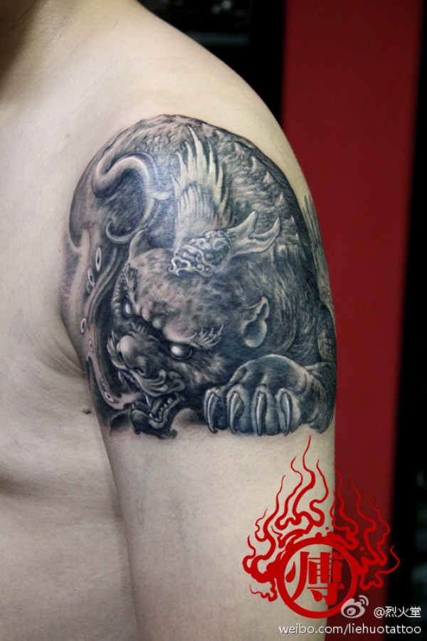 肩膀貔貅纹身! 身卧昆仑八脉,财吞四江五海~~~
