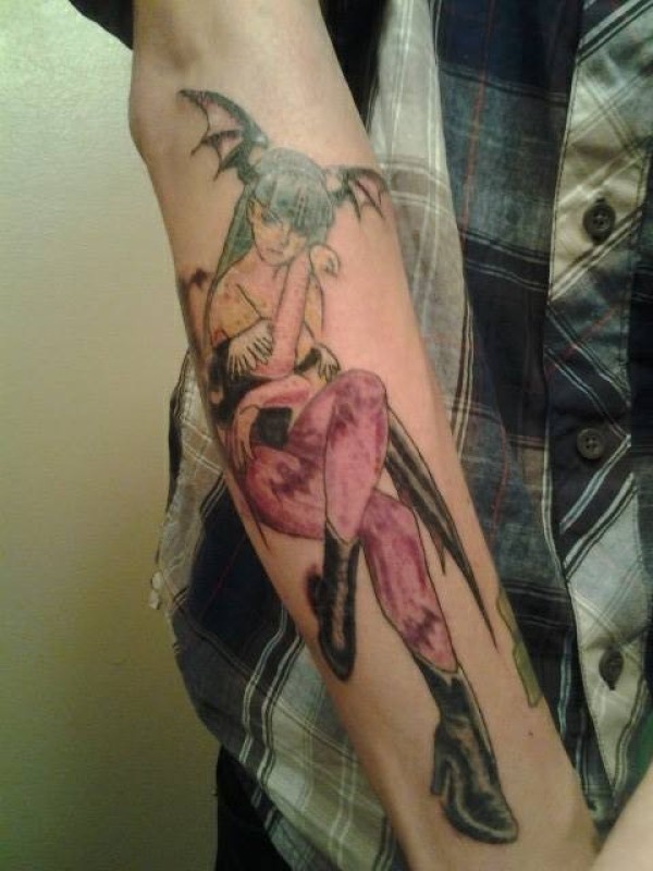 手臂亚洲卡通风格彩色恶魔女孩纹身图案