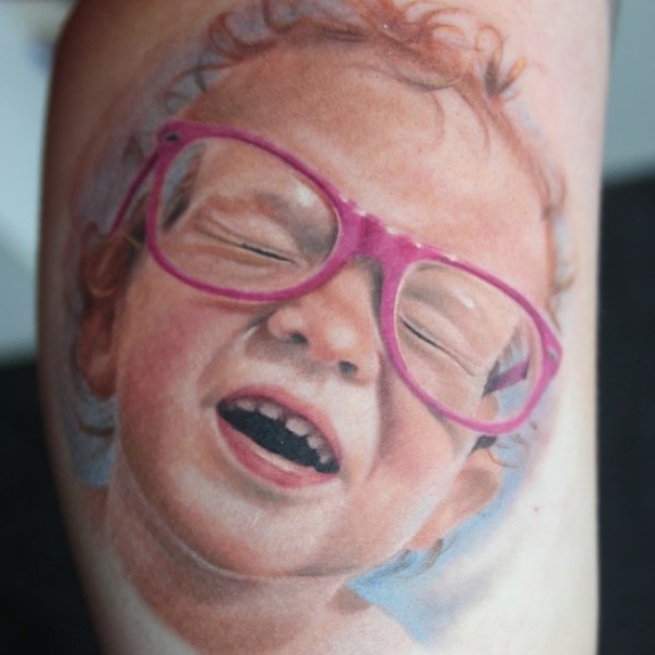 清纯女孩腿上可爱肖像纹身图片_肖像纹身图案大全_纹身图吧