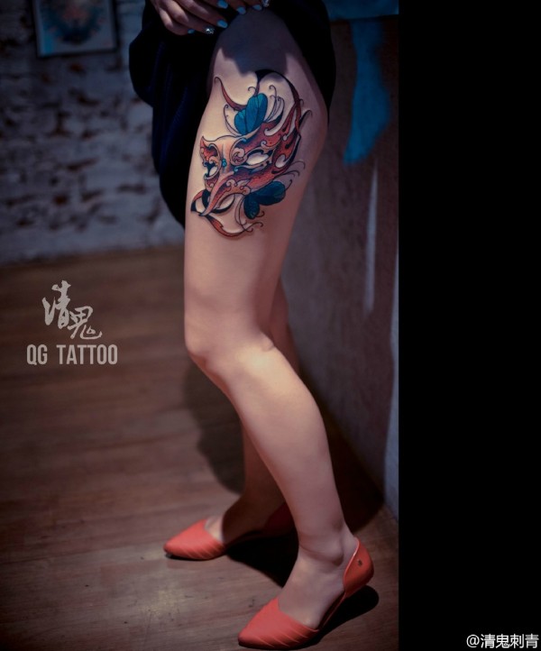 传统花腿纹身--18张传统风格的大花腿纹身图案作品