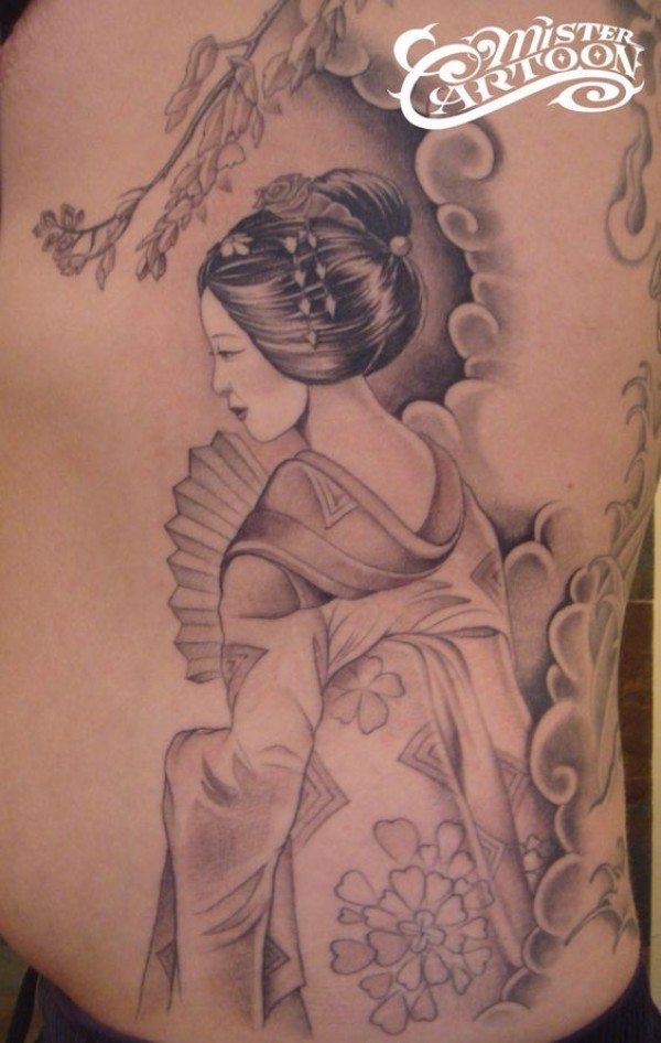 侧肋本色的亚洲艺妓纹身图案
