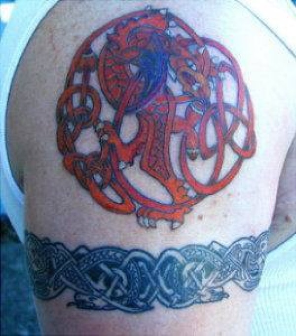 手臂红色的神秘龙图腾纹身图案