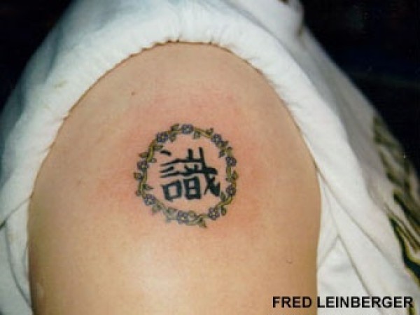 肩部绿色植物圆和汉字纹身图案