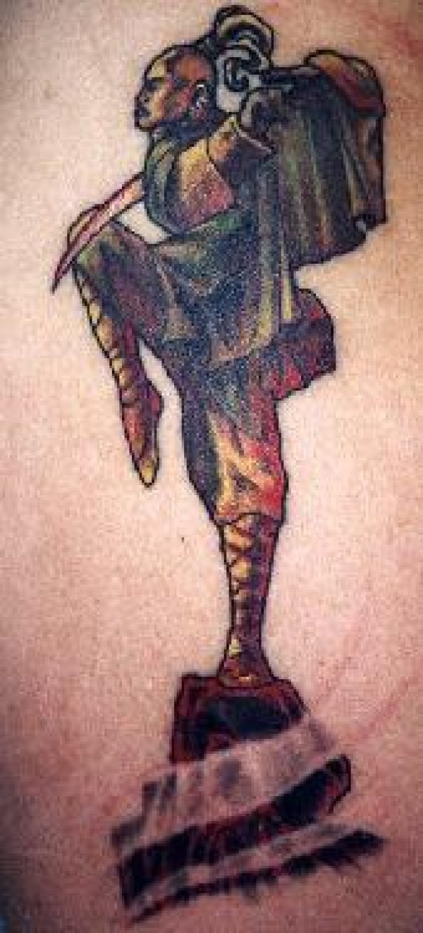 战士僧侣一条腿冥想彩色纹身图案