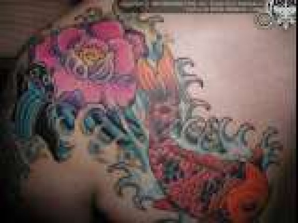 丰富多彩的亚洲之花和锦鲤纹身图案