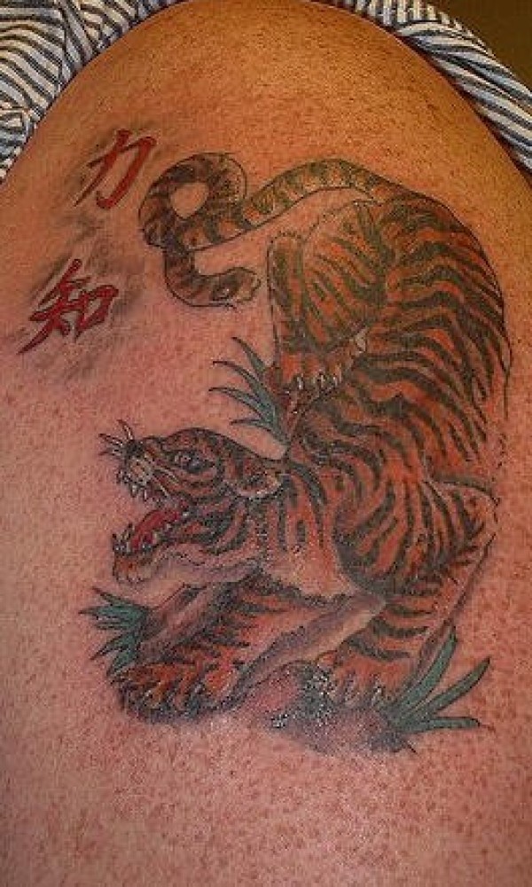 亚洲风格的老虎彩绘纹身图案